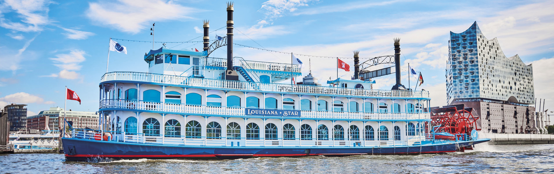 Steig ein und erlebe mit uns einen unvergesslichen Abend: Unser Gala Dinner 2026 findet auf der MS Louisiana Star statt – dem eindrucksvollen Schaufelraddampfer im Hamburger Hafen. Mit Blick auf die Elbe, im Glanz der Lichter bei einer fantastischen Rundfahrt und in festlicher Atmosphäre erwartet Dich ein Abend voller Genuss, Musik und besonderer Momente.